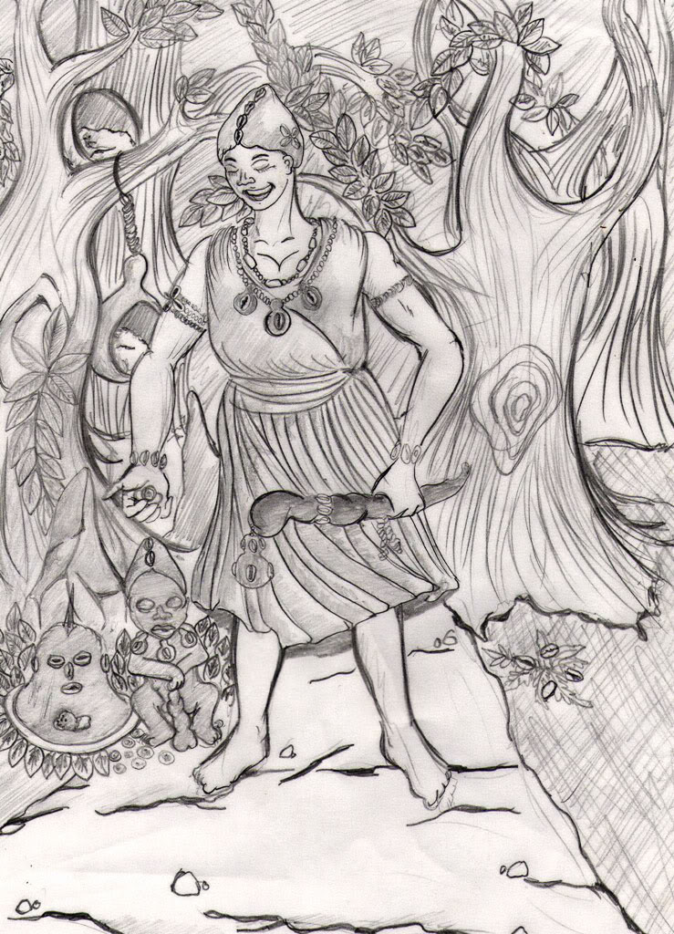 Para que as doenças sem razão não lhes sobrevivessem, que nenhuma maldição caísse sobre eles, que a destruição e a desgraça não se abatessem sobre eles. Òlódumàrè ensinou aos dezesseis Òrìsà o que eles deveriam realizar para evitar todas as coisas. Ele os delegou e enviou à terra, a fim de executarem tudo isso. Quando vieram ao òde àiyé, a terra fundaram fielmente na floresta o lugar de adoração de Orò, o Igbó Orò. Fundaram na floresta o lugar de adoração de Eégún. Fundaram na floresta o lugar de adoração de Ifá que chamamos Igbódù. Também abriram um caminho para os òrìsà, que chamamos Igbóòòsa. Executaram todos esses programas visando a ordem. Se alguém estava doente, ele ia consultar Ifá ao pé de Òrúnmìlá. Se acontecia que Eégún poderia salvá-lo, dir-lho-iam. Seria conduzido ao lugar de adoração na floresta de Eégún ao Igbó-Igbàlè, para que ele fizesse uma oferenda para Egúngún. Talvez que um de seus ancestrais devesse ser invocado como Eégún, para que o adorasse, a fim de que esse Eégún o protegesse. Se havia uma mulher estéril, Ifá seria consultado, a respeito dela, a fim de que Orúnmìlà pudesse indicar-lhe a decocção de Òsun, que ela deveria tomar. Se havia alguém que estava levando uma vida de miséria, Orúnmìlà consultaria Ifá, a respeito dele. Poderia ser que Orò estivesse associado à sua própria entidade criadora. Orúnmìlà diria a essa pessoa que é a Orò que ela devia adorar. E ela seria conduzida à floresta de Orò. Eles seguiram essa prática durante muito tempo. Enquanto realizavam as diversas oferendas, eles não chamavam Òsun. Cada vez que iam a floresta de Eégún, ou à floresta de Orò, ou à floresta de Ifá, ou à floresta de Òòsà, a seu retorno, os animais que eles tinham abatido, fossem cabras, fossem carneiros, fossem ovelhas, fossem aves, entregavam-nos a Òsun para que ela os cozinhasse. Preveniram-na que quando ela acabasse de preparar os alimentos, não devia comer nenhum pouco, porque deviam ser levados aos Malè, lá onde as oferendas são feitas. Òsun começou a usar o poder das mães ancestrais - àse Iyá-mi - e a estender sobre tudo o que ela fazia esse poder de Iyá-mi-Àjé, que tornava tudo inútil. Se se predissesse a alguém que ele ou ela não fosse morrer, essa pessoa não deixava de morrer.